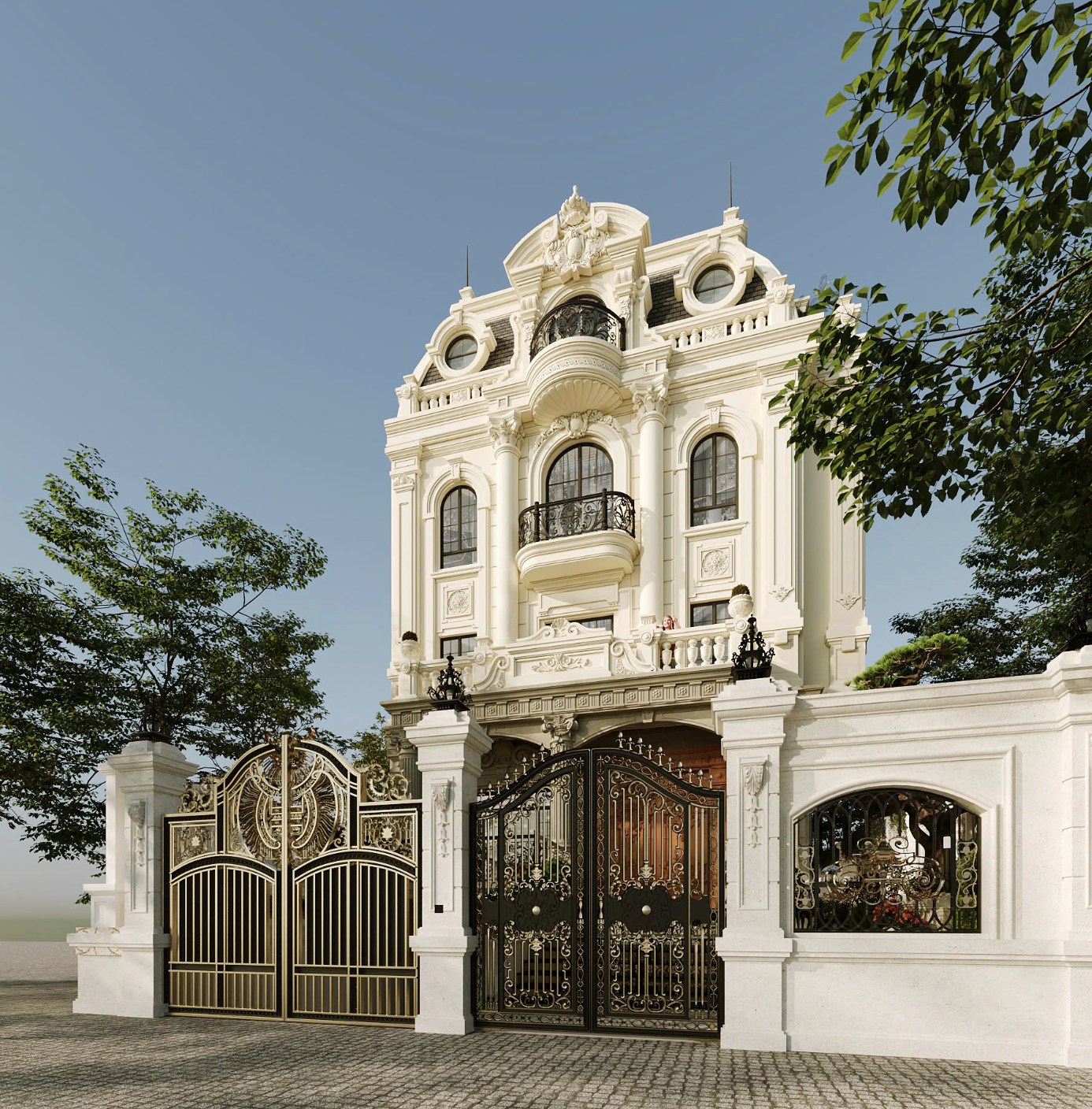 Biệt thự Tân Cổ Điển với thiết kế kiến trúc tuân thủ nguyên tắc đối xứng tuyệt đối tạo nên sự cân đối, bề thế và đầy trang nghiêm.